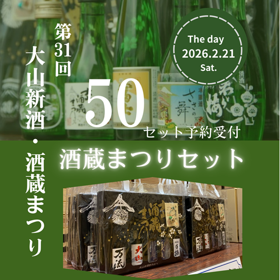 1.商品の購入は、酒蔵まつり当日(2/21)出羽商工会本所の「おまつり広場」大山酒販組合の販売ブースになります